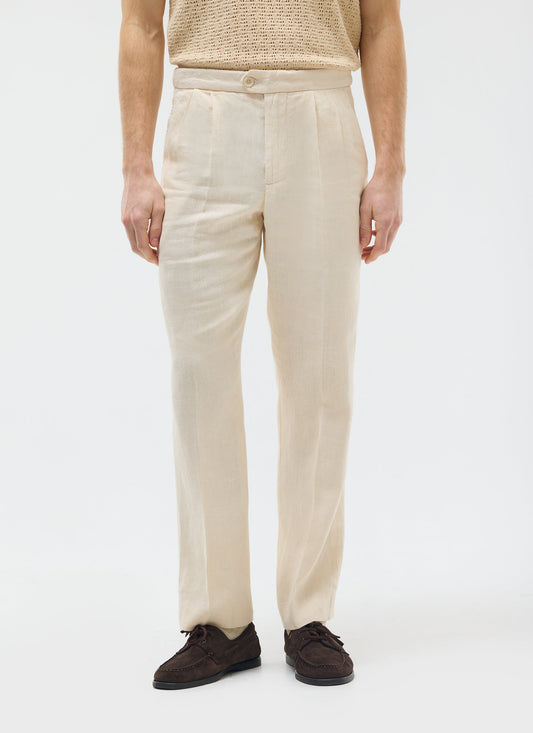 Pleated Tailored Trousers | Linen | Stone